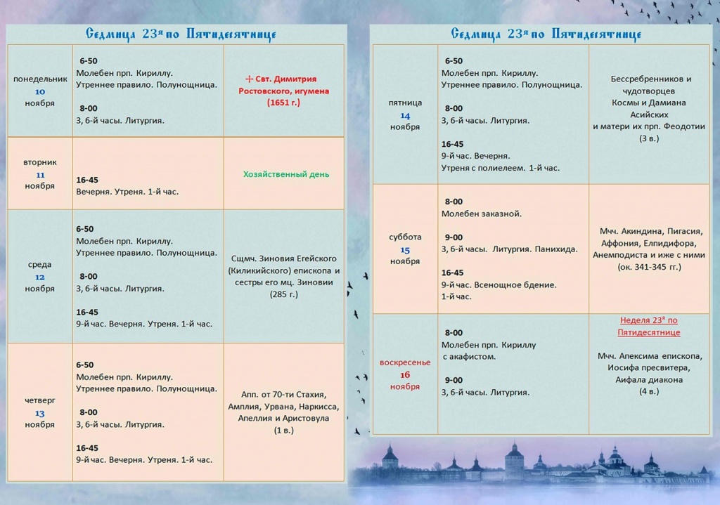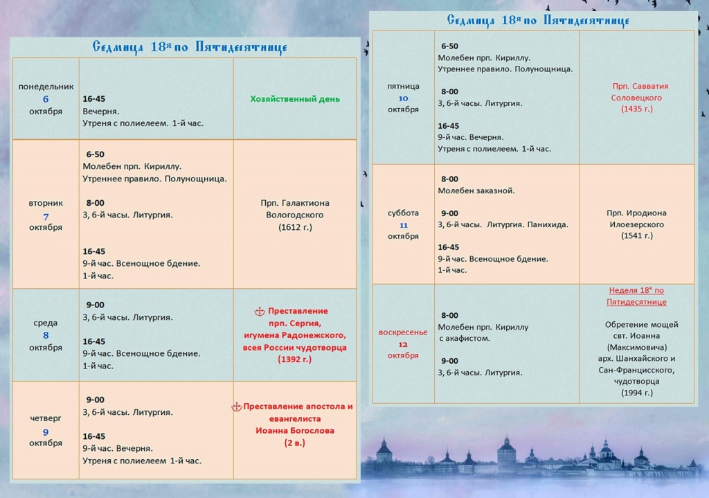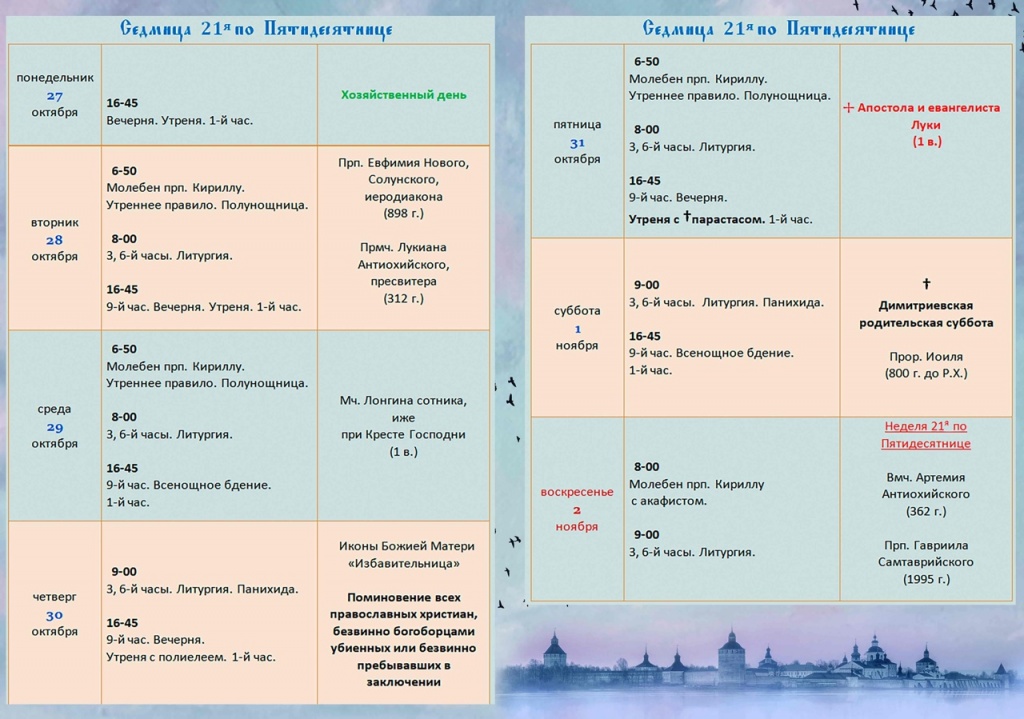 ТРЕБЫ в Кирилло-Белозерском монастыре: