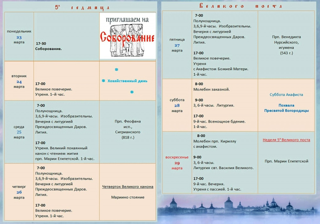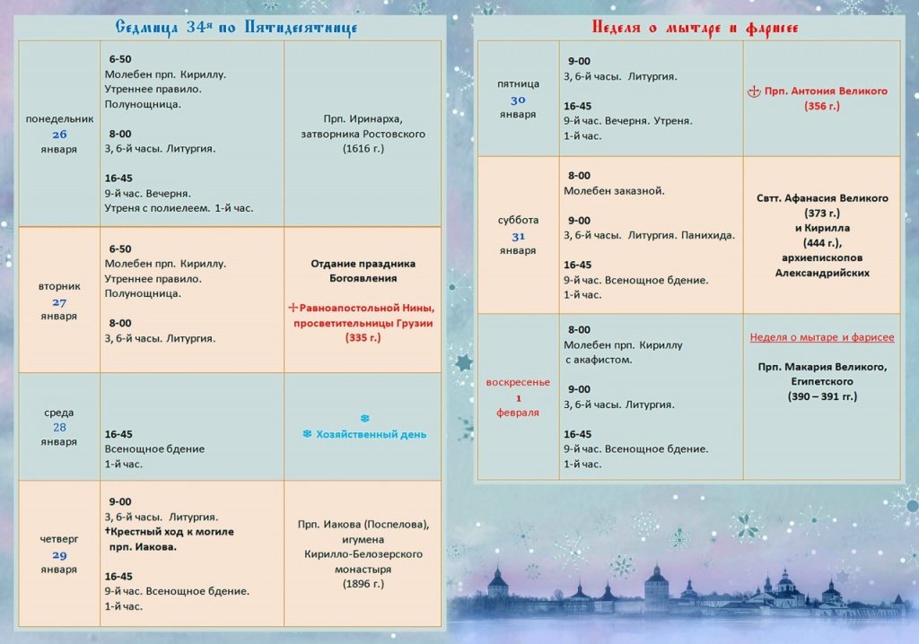 Расписание богослужений в монастыре: скачать